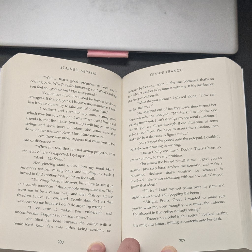 A couple pages midway the novel. Frank Stark is meeting with the psychiatrist, Doctor Matilda Brazen.