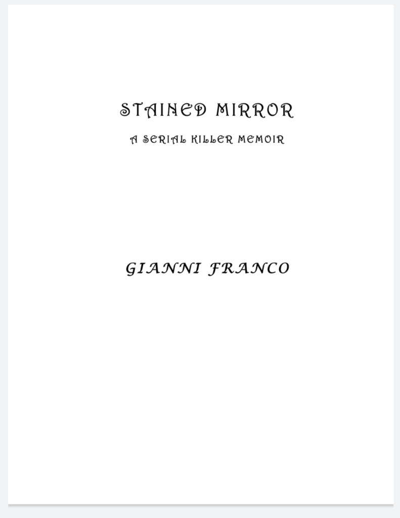 Stained Mirror, A Serial Killer Memoir. Front cover debuts tomorrow.